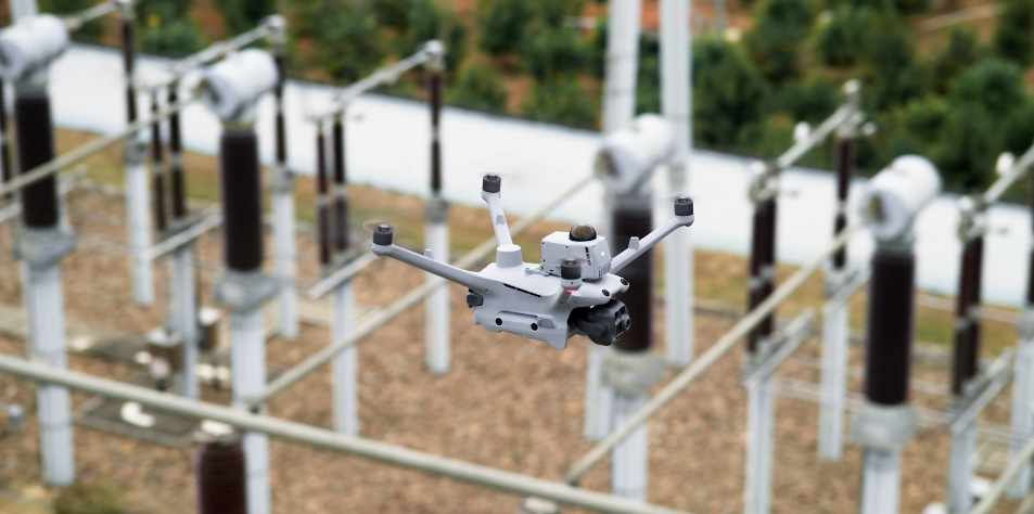 Los drones de la serie Matrice 4D están equipados con cámaras medias de tele y tele con estabilización en primer plano. La telecámara media es eficaz para inspecciones de alcance medio, detectando pasadores y grietas desde 10 metros, y leyendo claramente los datos de los instrumentos en subestaciones. [16]