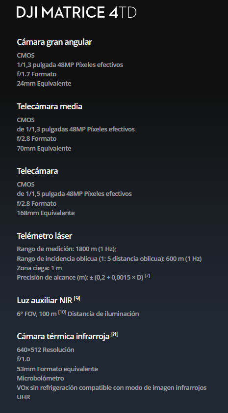 9. Solo disponible con Matrice 4TD. La luz auxiliar NIR es adecuada para las necesidades de iluminación de la telecámara.