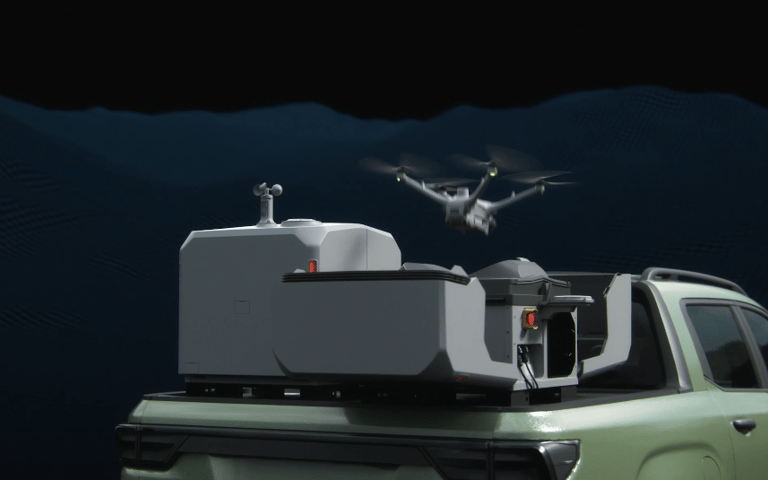 Dos muelles pueden desplegarse simultáneamente en un solo vehículo, logrando un aumento significativo de eficiencia. DJI Dock 3 emplea un patrón especial de toma de control para evitar colisiones dron con dron y garantizar la seguridad operativa, permitiendo que ambos muelles alternen tareas de forma ordenada.