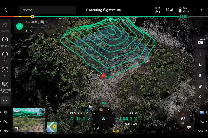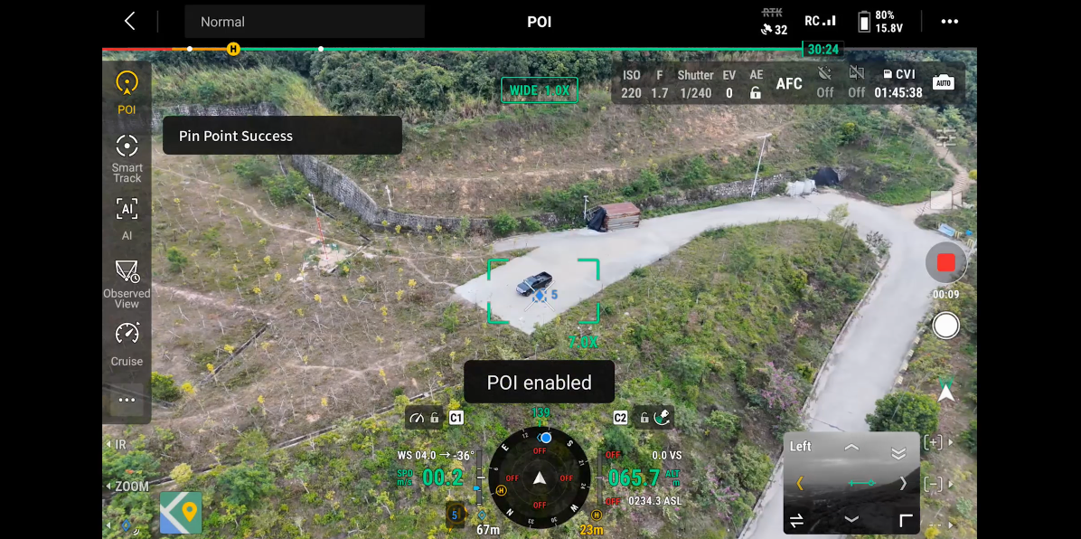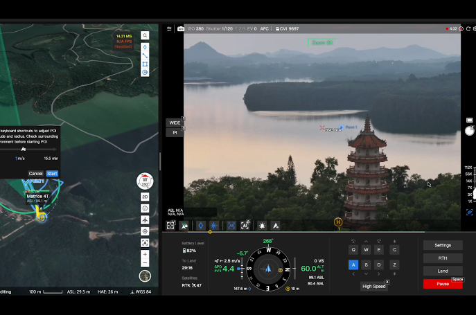 El POI permite la observación continua y la modelización 3D de edificios mientras se vuela alrededor de un área designada, mejorando enormemente la eficiencia de las tareas de observación y modelado en puntos fijos.