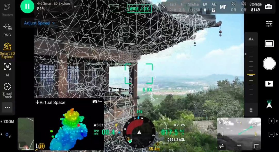 DJI Matrice 4E soporta Smart 3D Capture, que permite capturar y crear un modelo preliminar con el mando a distancia. A partir del modelo aproximado, puede generar rápidamente rutas cartográficas precisas cerca de la superficie de una estructura, completando mediciones detalladas y modelado de edificios irregulares. También permite mostrar rutas espaciales virtuales y fotos de puntos de paso para capturar en 3D de forma inteligente, lo que facilita evaluar la seguridad y área de cobertura de vuelo de rutas específicas.