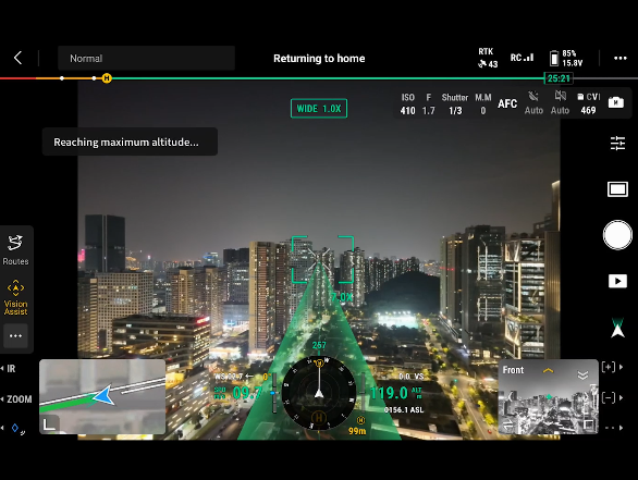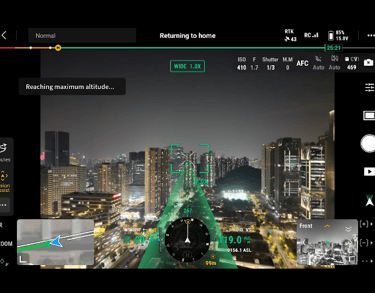 La serie Matrice 4 viene con un módulo integrado DJI RTK que soporta la banda de frecuencia L5 extendida y cuenta con el sistema GNSS+Vision Fusion Positioning and Navigation. Permite actualizar el punto de regreso a casa mediante posicionamiento visual, lo que permite un despegue rápido en 15 segundos. Incluso sin señales GNSS, puede completar el proceso de retorno a casa, superando eficazmente las obstrucciones de señal e interferencias comúnmente encontradas en entornos urbanos.