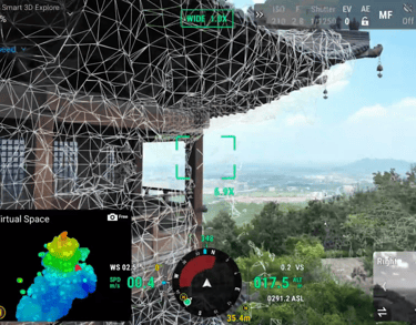 Matrice 4E puede emparejarse con Manifold 3 para habilitar Smart 3D Explore para modelado. Aprovechando la robusta potencia de cálculo de Manifold 3, el sistema planifica automáticamente rutas de vuelo seguras dentro del entorno del objeto y genera un modelo 3D aproximado que puede visualizarse en tiempo real con el mando a distancia. Esto agiliza el flujo de trabajo de fotogrametría a corta distancia y mejora la eficiencia.