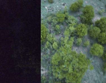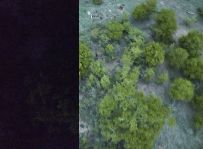 El Matrice 4T incorpora nuevo hardware de iluminación NIR, que permite distancias de iluminación de hasta 100 metros. [4] Esto garantiza una visibilidad clara de los objetos en entornos oscuros, lo que lo hace ideal para aplicaciones como la protección de la fauna.