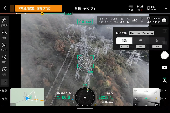 En condiciones como smog o humedad atmosférica, la Debrinada Electrónica soporta tres modos (Bajo, Medio, Alto) para mejorar la claridad de imagen de la serie Matrice 4 y adaptarla a diferentes entornos y requisitos operativos.