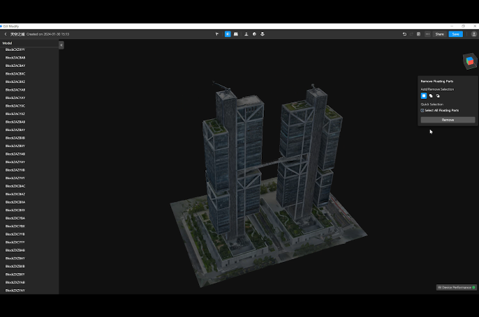 DJI Modify ofrece edición inteligente de malla 3D y modelos de nubes de puntos. Cuando se combina con la serie Matrice 4 y DJI Terra, puede crear una solución integrada que cubre levantamientos aéreos, modelado, reparación de modelos y compartición.
